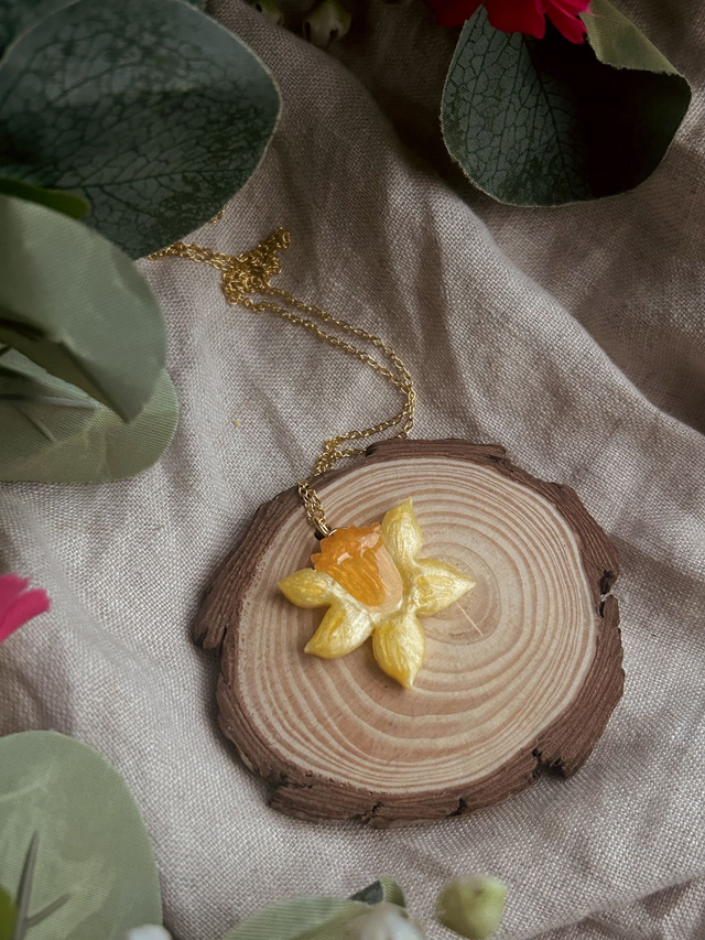Inspired by March flowers and St David’s Day this beautiful necklace features multiple tones of yellow resin cast in a multi layered mould giving a 3D appearance.