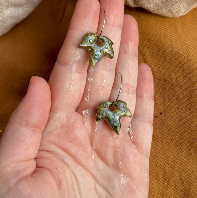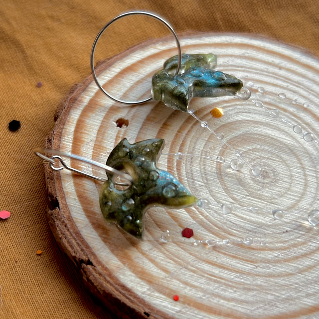 1. Resin cast ivy leaves in green tones with hand placed resin droplets.