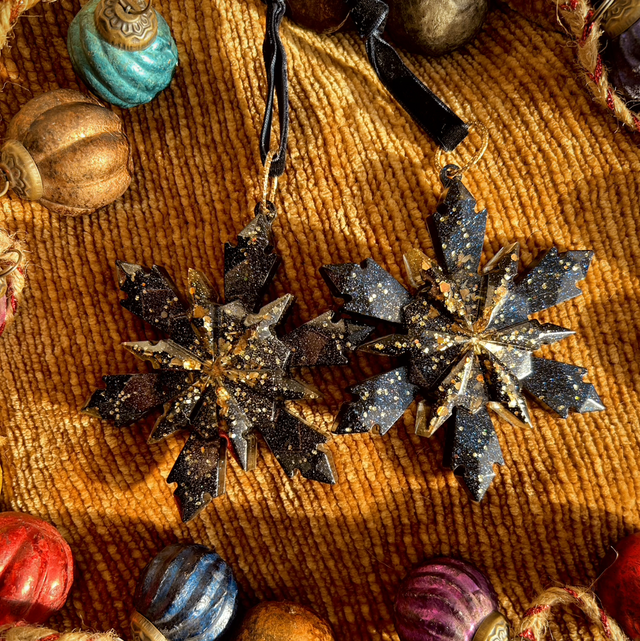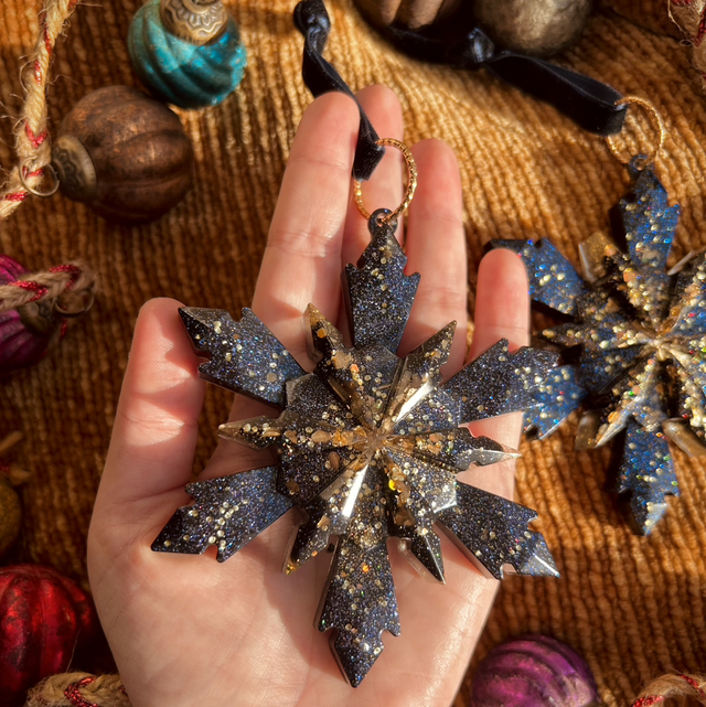 *Please note that these items are handmade. The colours and glitter mixes are the same but each snowflake is individual and has variations in the way the colour and glitter is distributed within the ornament