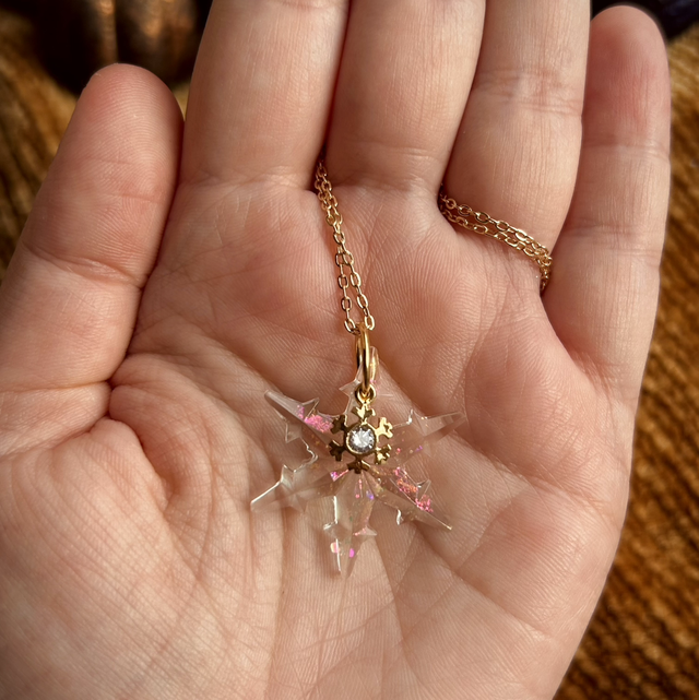 Snowflake Necklace Statement - Clear and Pink Iridescent